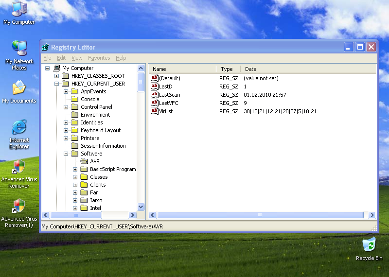 - [HKEY_CURRENT_USER\Software\AVR] "LastScan"