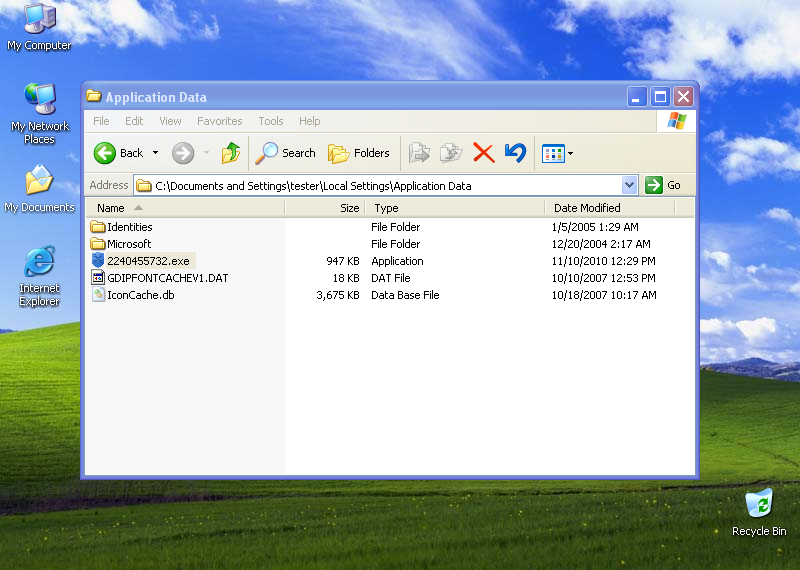 - Documents and Settings\<user>\Local Settings\Application Data\<number>.exe