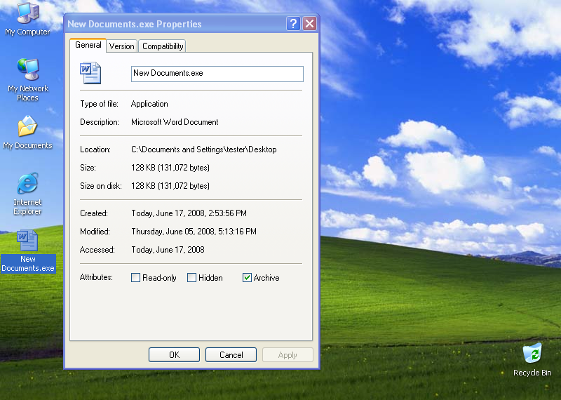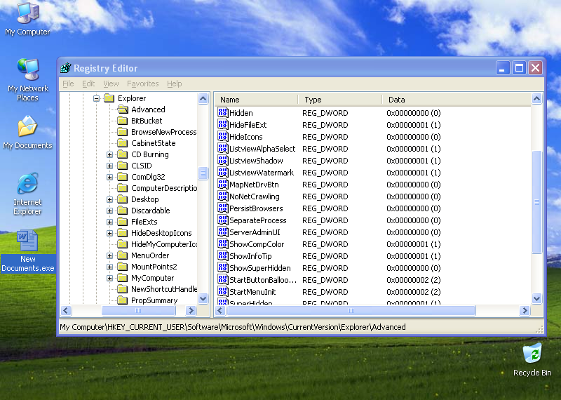 • C:\Documents and Settings\<user>\Desktop\New Documents.exe
