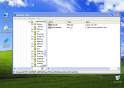 A rendszerleíró adatbázisba a(z) [ HKEY_CURRENT_USER\ Software\ Microsoft\ Windows\ CurrentVersion\ Run] " Adobe Reader" =" C: \ WINDOWS\ acroread. exe" bejegyzést teszi, illetve módosítja (ha már létezik).