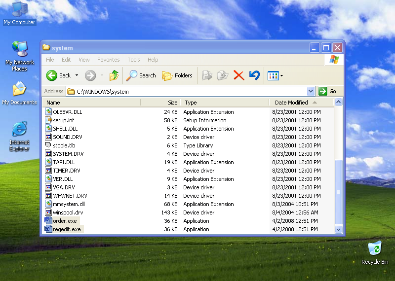 - [HKEY_CURRENT_USER\Software\Microsoft\Windows\CurrentVersion\Policies\Explorer\RUN] "OFFICE"="C:\WINDOWS\system32\order.exe"